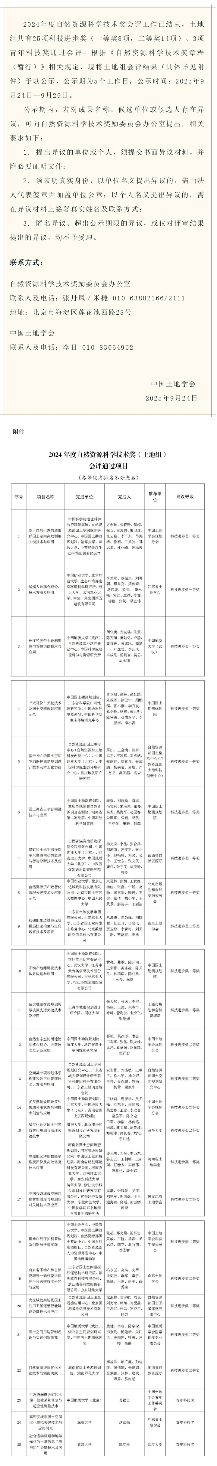 公示|2024年度自然资源科学技术奖(土地组)会评结果公示